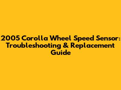 2005 Corolla Wheel Speed Sensor: Troubleshooting & Replacement