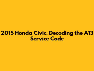 2015 Honda Civic: Decoding The A13 Service Code