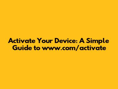 Activate Your Device: A Simple Guide To Www.com/activate