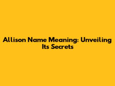 Allison Name Meaning: Unveiling Its Secrets