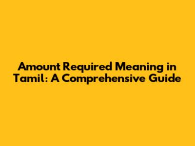 Amount Required: Tamil Meaning & Usage Explained