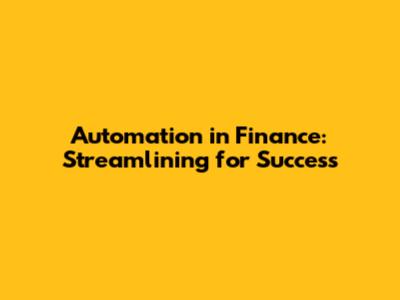 Automation In Finance: Streamlining For Success
