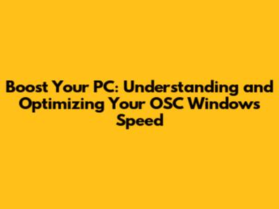 Boost Your PC: Understanding And Optimizing Your OSC Windows Speed