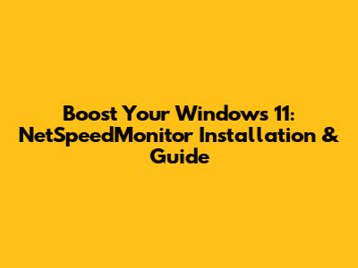 Boost Your Windows 11: NetSpeedMonitor Installation & Guide