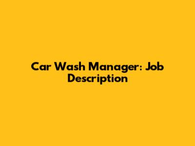 Car Wash Manager: Job Description