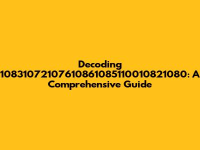 Have you ever stumbled upon a seemingly random string of numbers and wondered what it could possibly mean? Today, we're diving deep into understanding the enigmatic sequence 10831072107610861085110010821080. This isn't just a random jumble; it's a code, a key, or perhaps a pointer to something more significant. In this guide, we'll break down potential interpretations, explore possible origins, and provide you with the tools to decipher similar codes you might encounter in the future.