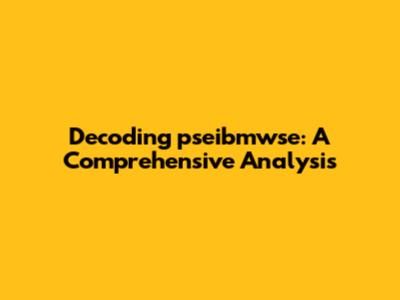Decoding Pseibmwse: A Comprehensive Analysis