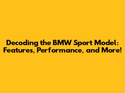 Decoding The BMW Sport Model: Features, Performance, And More!
