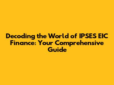 Hey guys! Ever heard of IPSES EIC finance and scratched your head? Don't worry, you're not alone! It's a bit of a mouthful, but understanding it can unlock a whole new world of financial possibilities. In this article, we're going to break down everything you need to know about IPSES EIC finance, from its fundamental concepts to its practical applications. We'll explore the key components, the benefits, and some real-world examples to help you navigate this sometimes-complex landscape. So, buckle up, because we're about to embark on an exciting journey into the heart of IPSES EIC finance. Let's get started!