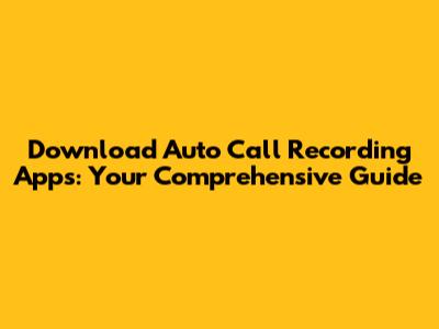 Download Auto Call Recording Apps: Your Comprehensive Guide
