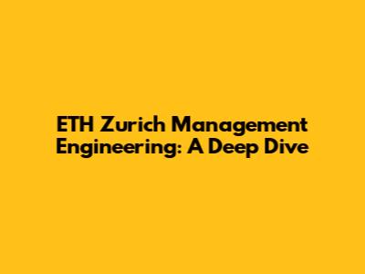 ETH Zurich Management Engineering: A Deep Dive
