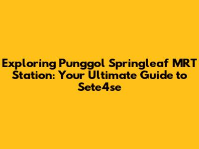 Hey everyone! Are you ready to dive deep into the heart of Punggol and explore the wonders of the Punggol Springleaf MRT Station (Sete4se)? This guide is your one-stop shop for everything you need to know about this bustling transportation hub. We'll cover everything from navigating the station like a pro to uncovering the nearby hidden gems. So, grab a seat, get comfy, and let's embark on this exciting journey together. This article aims to provide you with a detailed overview of the Punggol Springleaf MRT Station, or rather, the Sete4se station, covering essential aspects that will enhance your experience, whether you're a daily commuter or a curious explorer. We'll delve into the station's layout, connectivity, surrounding amenities, and future developments, ensuring you're well-equipped with the knowledge to make the most of your time around this vibrant area. From understanding the station's architecture and design to exploring the retail and dining options available, we'll leave no stone unturned in our quest to provide you with a comprehensive understanding of what Punggol Springleaf MRT Station offers. Buckle up, because we're about to uncover everything you need to know about this essential part of the Punggol landscape! The main keyword for this article is Punggol Springleaf MRT Station, and we'll make sure to explore every aspect that makes it a crucial part of the Punggol area. We'll uncover everything you need to know about the Sete4se station.