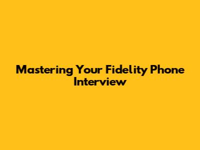 Fidelity Phone Interview Tips