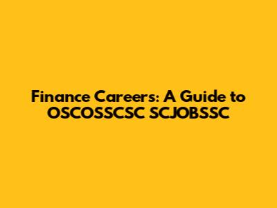 Finance Careers: A Guide To OSCOSSCSC SCJOBSSC