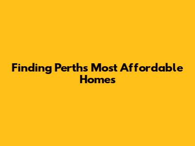 Finding Perth's Most Affordable Homes