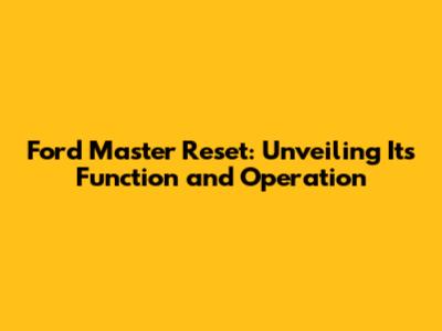 Step-by-Step Guide: How to Perform a Ford Master Reset