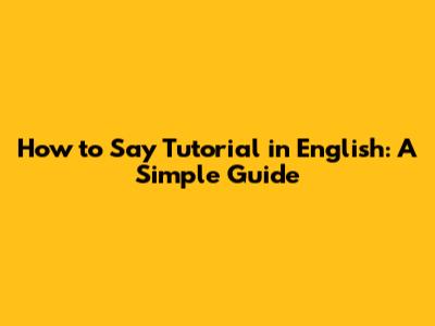 How To Say 'Tutorial' In English: A Simple Guide