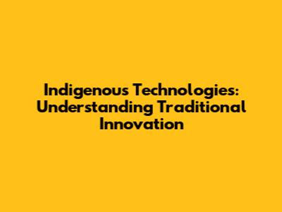 Indigenous Technologies: Understanding Traditional Innovation