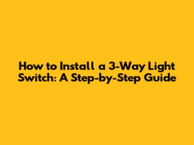 Install A 3-Way Light Switch: A Step-by-Step Guide