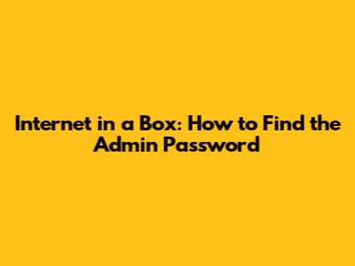 Internet In A Box: How To Find The Admin Password