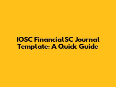 IOSC FinancialSC Journal Template: A Quick Guide