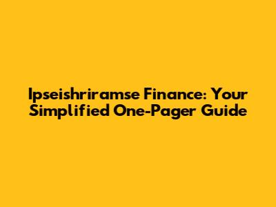 Ipseishriramse Finance: Your Simplified One-Pager Guide