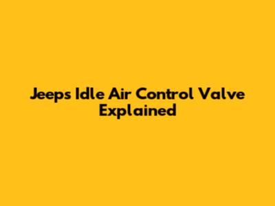 Jeeps Idle Air Control Valve Explained