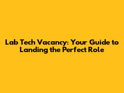 Lab Tech Vacancy: Your Guide To Landing The Perfect Role