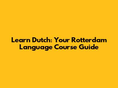 Learn Dutch: Your Rotterdam Language Course Guide