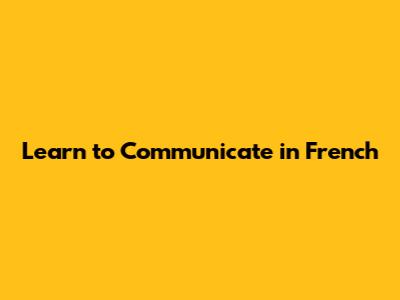 Learn To Communicate In French