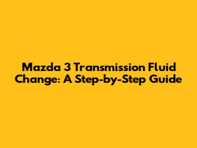 Mazda 3 Transmission Fluid Change: A Step-by-Step Guide