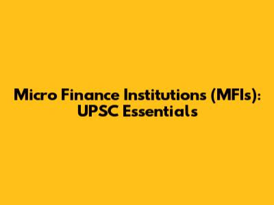 Micro Finance Institutions (MFIs): UPSC Essentials