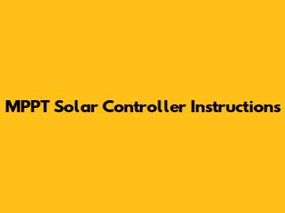 MPPT Solar Controller: Setup & Usage Guide
