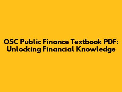 OSC Public Finance Textbook PDF: Your Guide To Financial Mastery