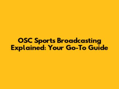 OSC Sports Broadcasting Explained: Everything You Need To Know