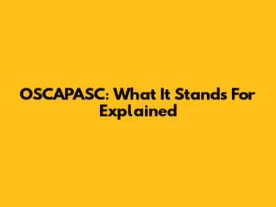 OSCAPASC: What It Stands For Explained