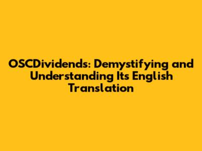 OSCDividends: Demystifying And Understanding Its English Translation