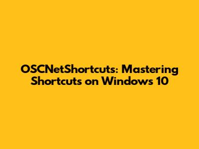 OSCNetShortcuts: Mastering Shortcuts On Windows 10