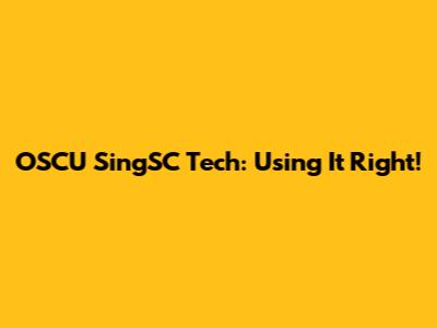 OSCU SingSC Tech: Using It Right!