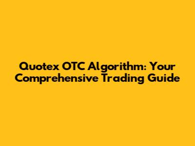 Quotex OTC Algorithm: Your Comprehensive Trading Guide
