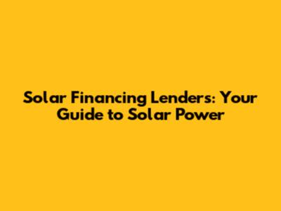 Solar Financing Lenders: Your Guide To Solar Power