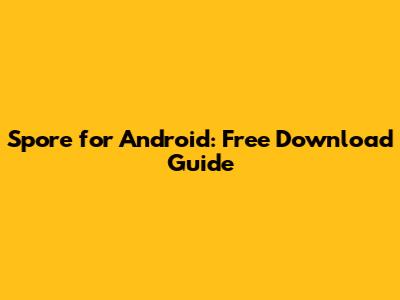 Spore For Android: Free Download Guide