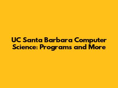 UC Santa Barbara Computer Science: Programs And More