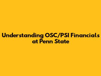 Hey guys! Let's dive into the world of OSC/PSI financials at Penn State. If you're a student, faculty member, or just someone curious about how the university manages its money, you've come to the right place. We'll break down what OSC and PSI are, how they're funded, and why they're so important to the Penn State community.