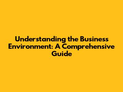 Understanding The Business Environment: A Comprehensive Guide