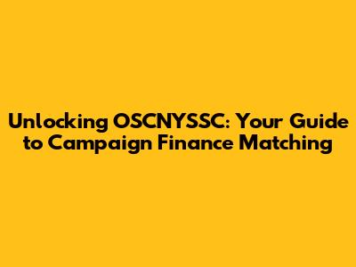 Unlocking OSCNYSSC: Your Guide To Campaign Finance Matching